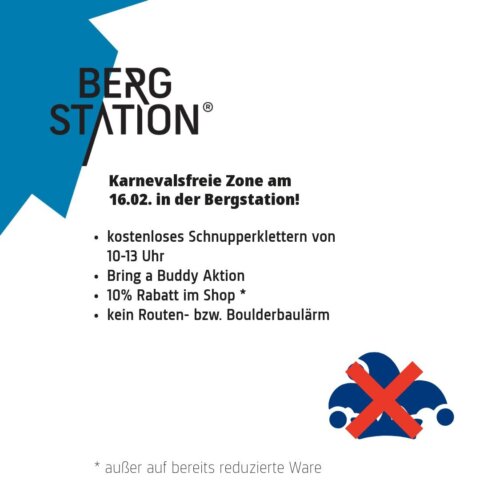 Kein Helau, kein Alaaf, einfach klettern und das zu den gewohnten Zeiten von 10-23 Uhr